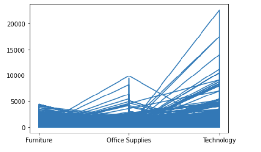 plt.plot(df['Category'], df['Sales'])