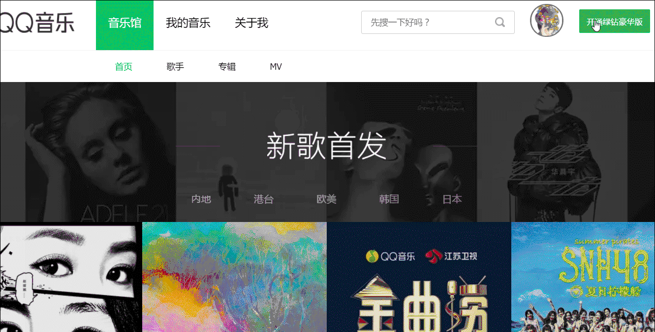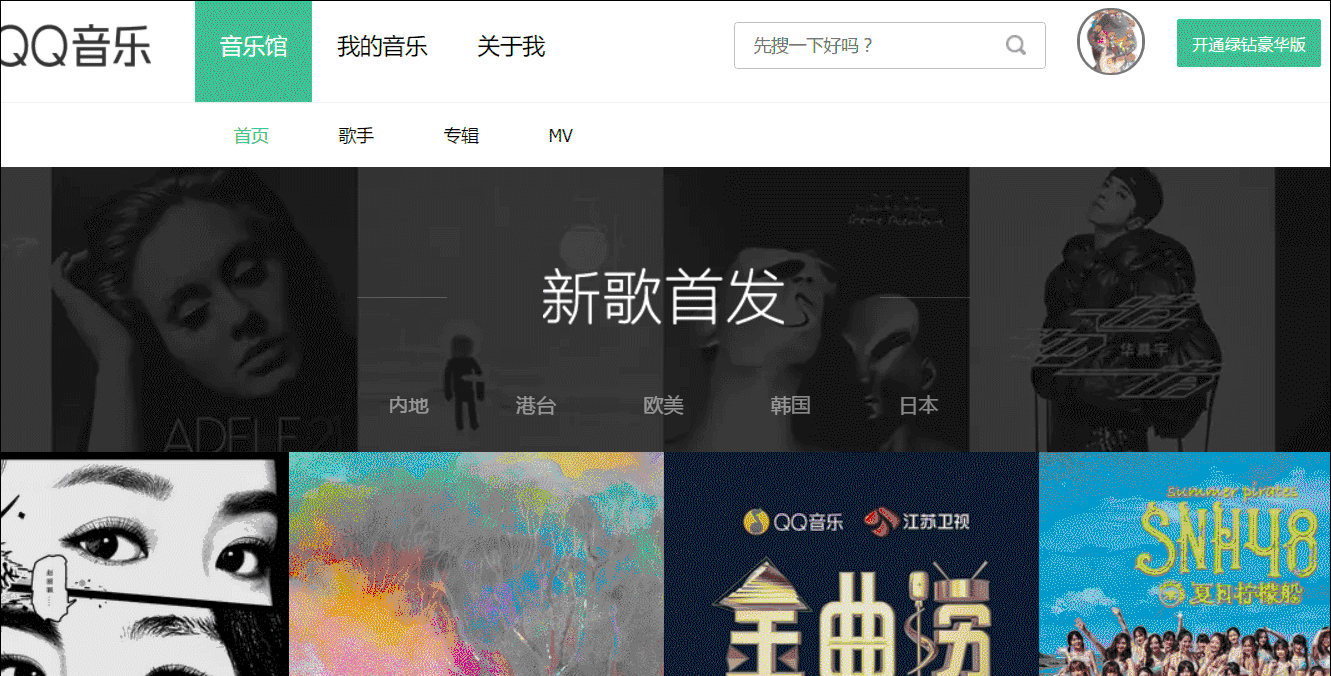 - 不用说,qq音乐这个网站的页面我是真的挺喜欢,不光是他的设计,页面的布局也很美观,在控制台调试的时候可以看看它的结构,非常有层次而富有美感,即使加上 一层margin,padding也不会有违和感。这就造就了它的轮播图结构比较麻烦,不是说做不出来,因为这是第一次上传的项目,我想先将大概的结构完善一下,后期再 维护,所以我就选用了element-UI里面的跑马灯式轮播图组件,大体来说,除了部分瑕疵以外,还是高度还原了原版轮播图的。