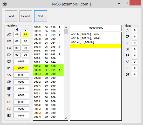Nx86 A C# 8086 processor emulator for study purposes. NOTE: For now it only performs some MOV instructions. (Working in progress)