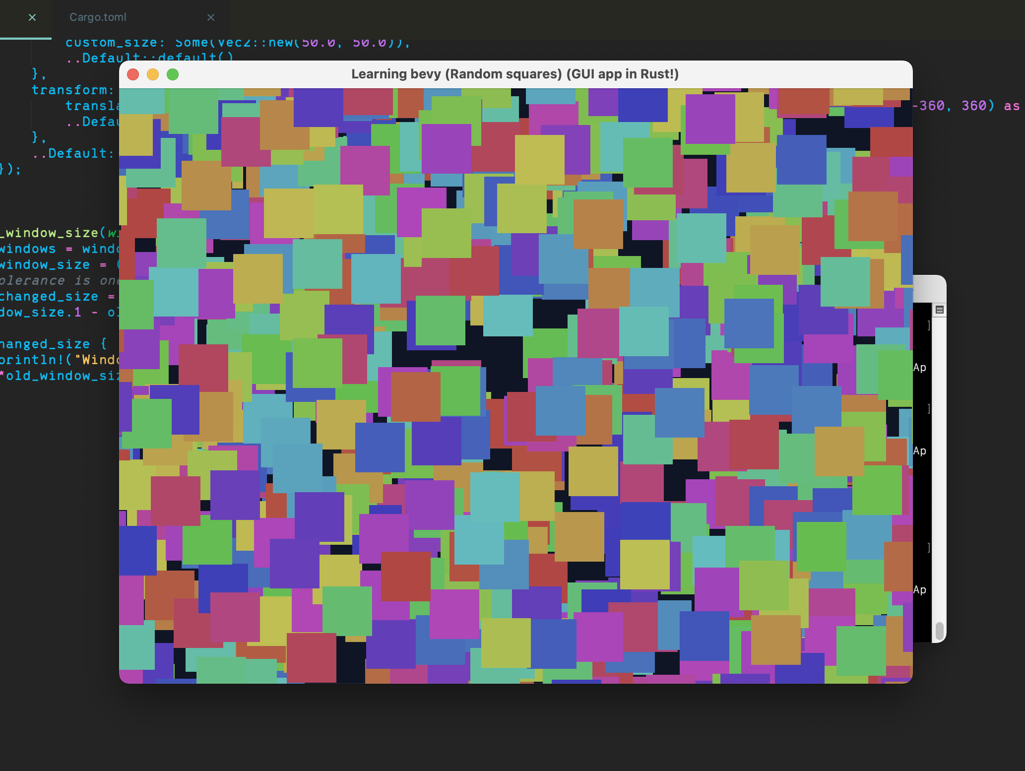 Something interesting is that in bevy's coordinate system, the origin (0,0) is in the centre of the screen, and Y goes up (something with the position 0,10 appears higher than something at 0,0)