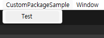 }작성 후 에디터로 돌아와 컴파일이 완료된다면, 에디터 상단에 [CustomPackageSample] → [Test] 메뉴를 눌러 확인할 수 있습니다.