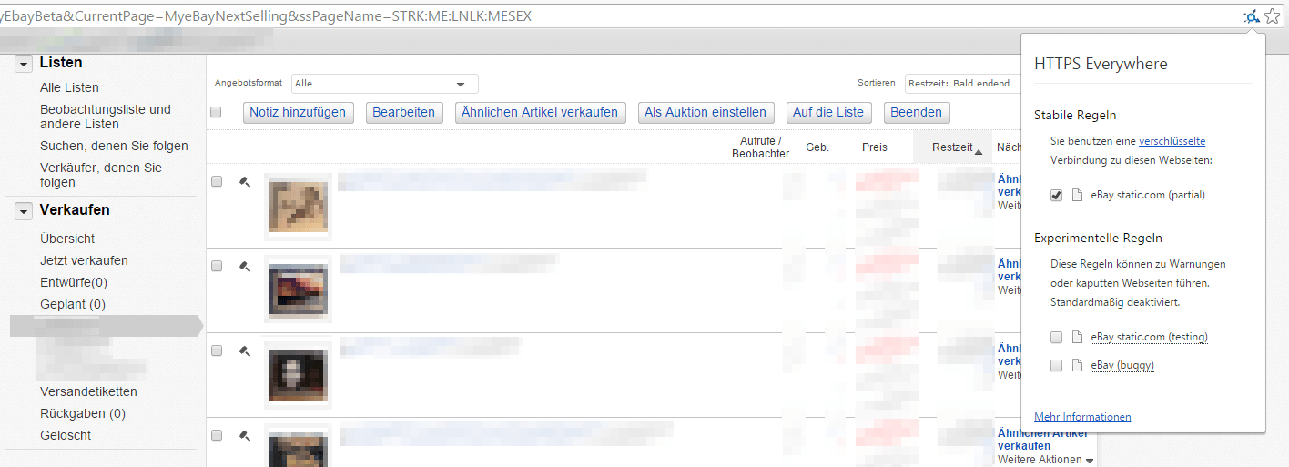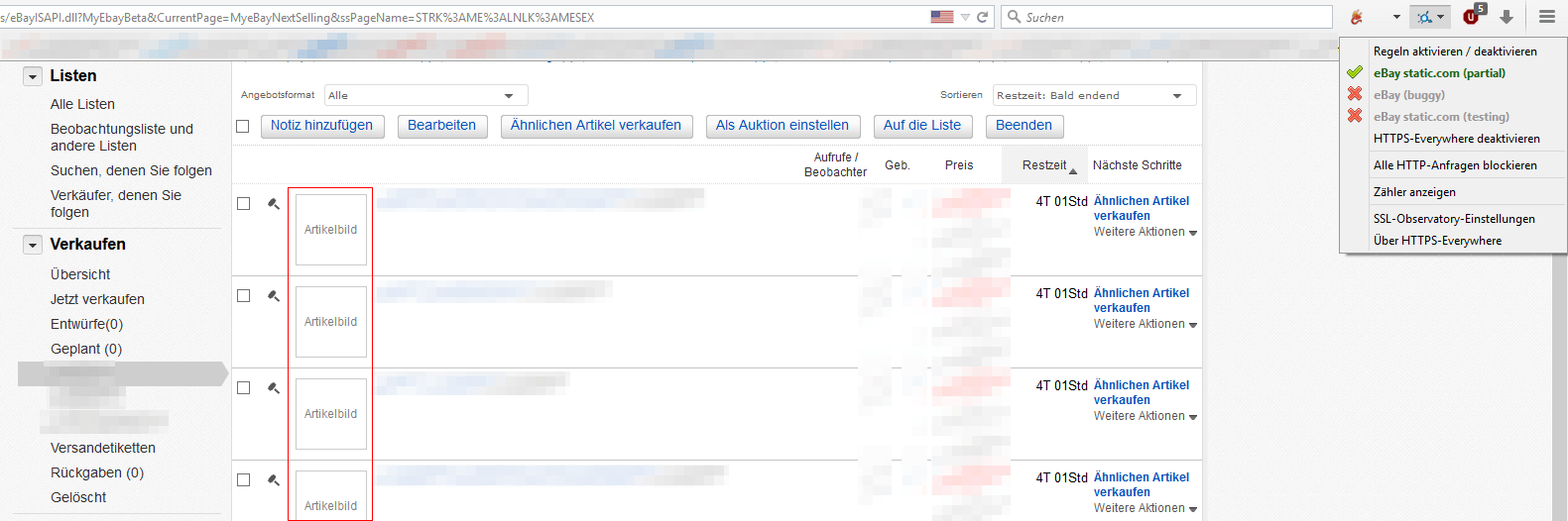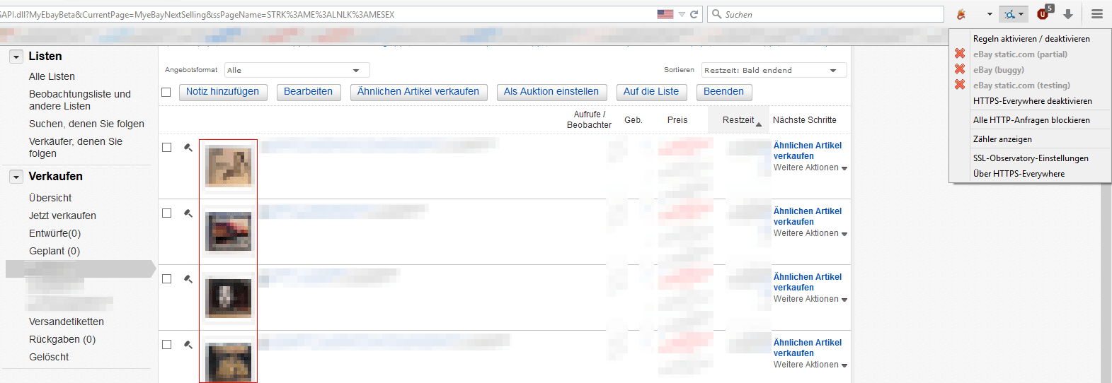 Yesterday I noticed that the thumbnails of my articles on eBay aren't loaded anymore. This is how it looks: