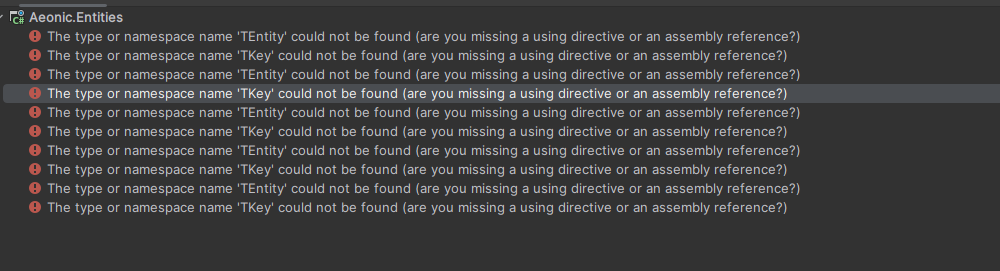 I have an abstract class called AeonicBaseEntity. this is the errors I see: