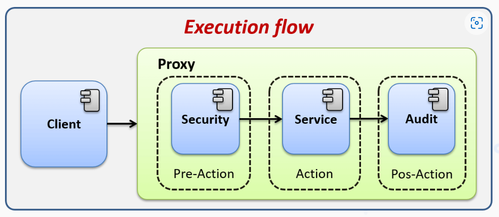 Mediante la implementación del patrón de diseño Proxy crearemos un mecanismo de seguridad, el cual intercepte las ejecuciones de procesos para validar si el usuario que intenta ejecutar cuenta con los privilegios necesarios, evitando que usuarios no autorizados los ejecuten, además, una vez que el proceso es ejecutado, se auditara la ejecución y quedará un registro de la ejecución. Todo esto se realizará sin que el usuario se dé cuenta, pues el proxy envolverá la lógica de seguridad.