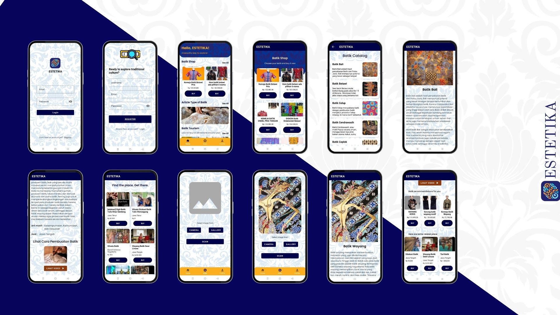 ESTETIKA “Eksplorasi Tentang Batik Indonesia” present as an application incorporates machine learning for Batik recognition and offers features to enhance public awareness, support local artisans, and boost the tourism industry.