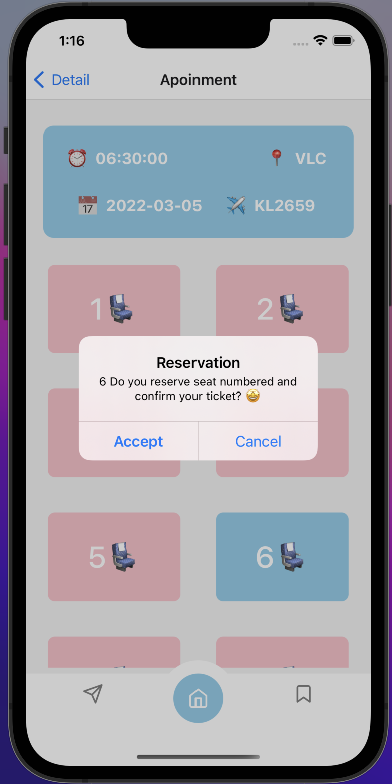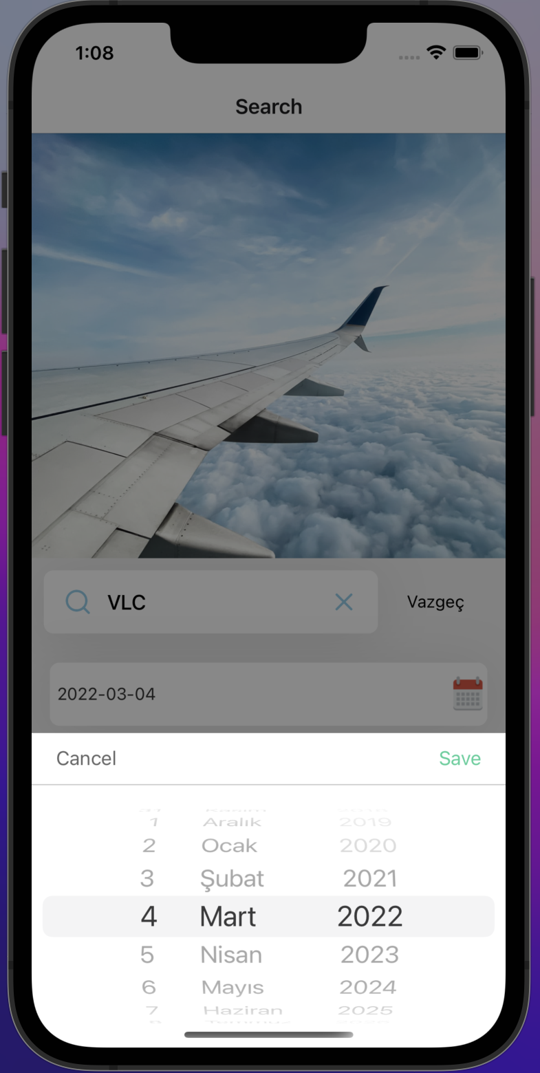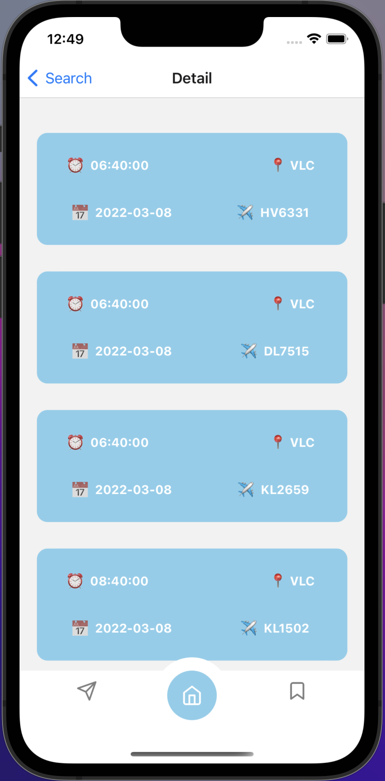 In this mobile application, all flight information at Amsterdam Schiphol Airport can be accessed with the help of API. With the date and destination information received from the user on the login page of the application, querying can be done easily and quickly. On iOS devices, the date selection is made with a slide, but on Android devices, it must be entered in the input field in the format "2022-03-05". The airport to be entered as the destination must be entered with abbreviations on both platforms. E.g; "VLC" must be entered as "YYZ". After the seat selection is made, the flight information is saved in the QR code. All past and future flights are shown on the history page. Flight information can be accessed by scanning the QR code for the booked flights. Finally, if you want to delete the ticket information saved on the phone, the button in the favorite section can be used.