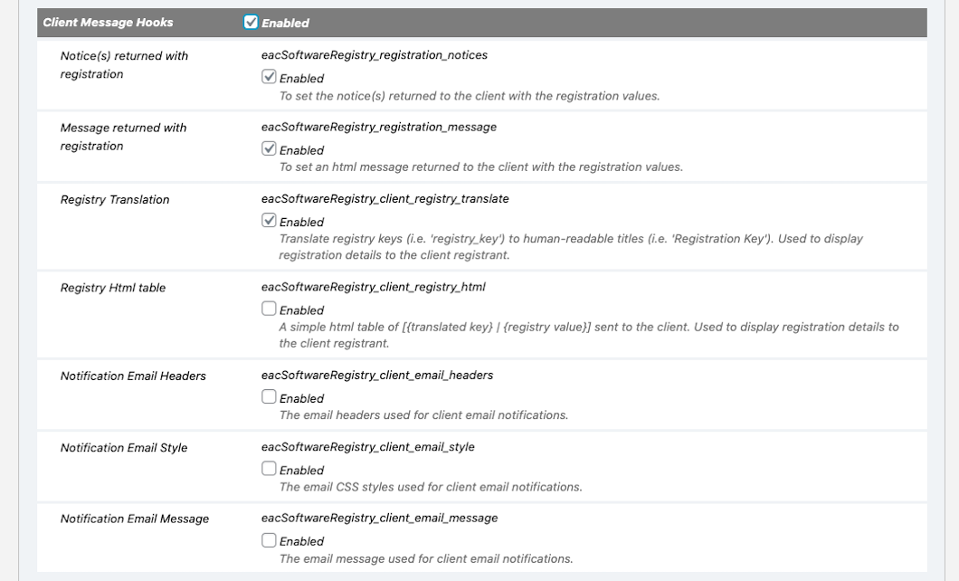 {eac}SoftwareRegistry custom hooks - Add PHP code for the many hooks (filters and actions) available in the Software Registration Server.