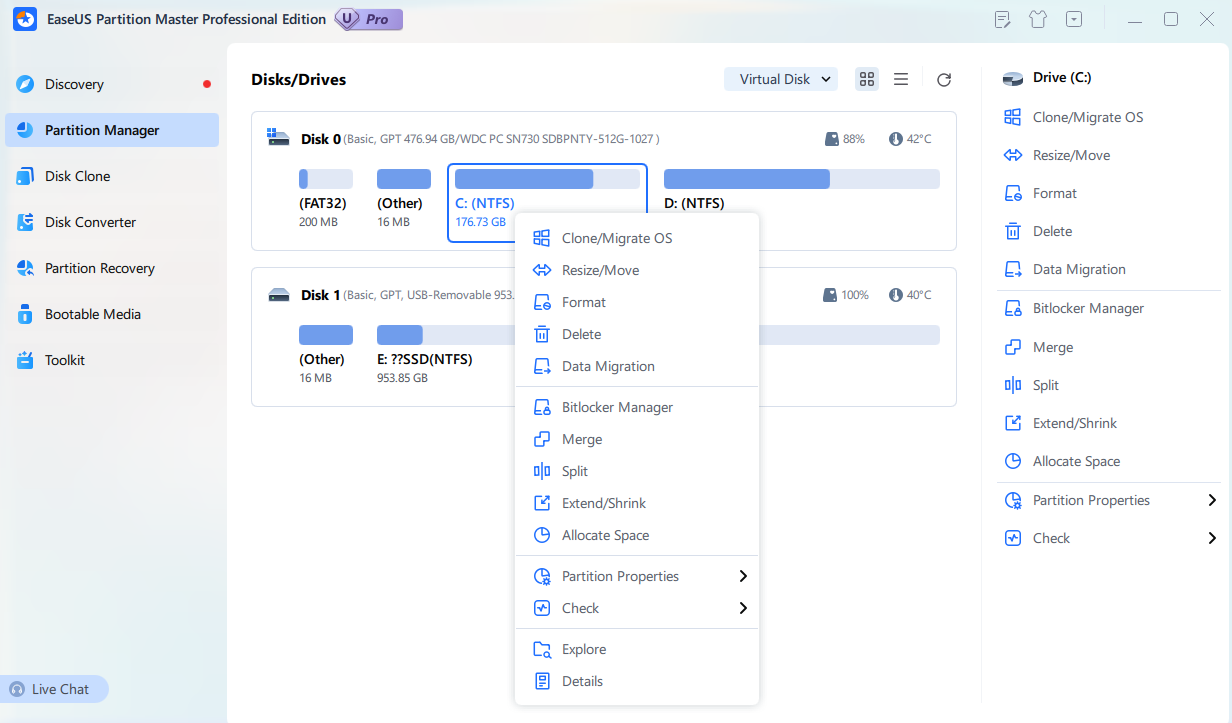 With EaseUS Partition Master, users can efficiently manage disk space, migrate OS to SSD, clone entire disks, and recover lost partitions. EaseUS Partition Master combines enterprise-level functionality with an intuitive user interface, making it the ideal choice for system administrators, IT professionals, and home users who demand reliability and performance in partition management.