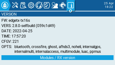 Today's nightly on TX16S: Presently says Do you think, we should tweak: Lines 61 to 65 in 3493d69 to say nightly?