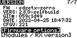 Very nice, thank you Peter for looking into this and improving it even further! I tested with physical RadioMaster TX16S mkII and Zorro. First, when flashed with the firmware from this PR/GitHub to TX16S: The same codebase, built locally and flashed to the radio: Bootloader flashed with the binary from this PR/GitHub: Bootloader display output, while the binary from this PR/GitHub is selected: Bootloader, while the self-built binary from this PR is selected: The screenshots in the same vain with RadioMaster Zorro: Should we go and create a test-tag, that we remove afterwards to see the output (not that I doubt your local build-gh.sh tests)? |