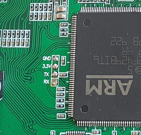 USART3/AUX1 pins can be reached via debug header. Here T16: