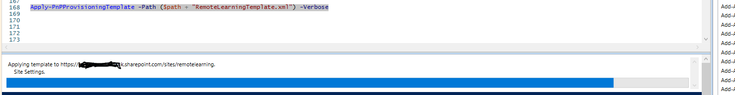 - Apply-PnPProvisioningTemplate -Path ($path + "RemoteLearningTemplate. ...