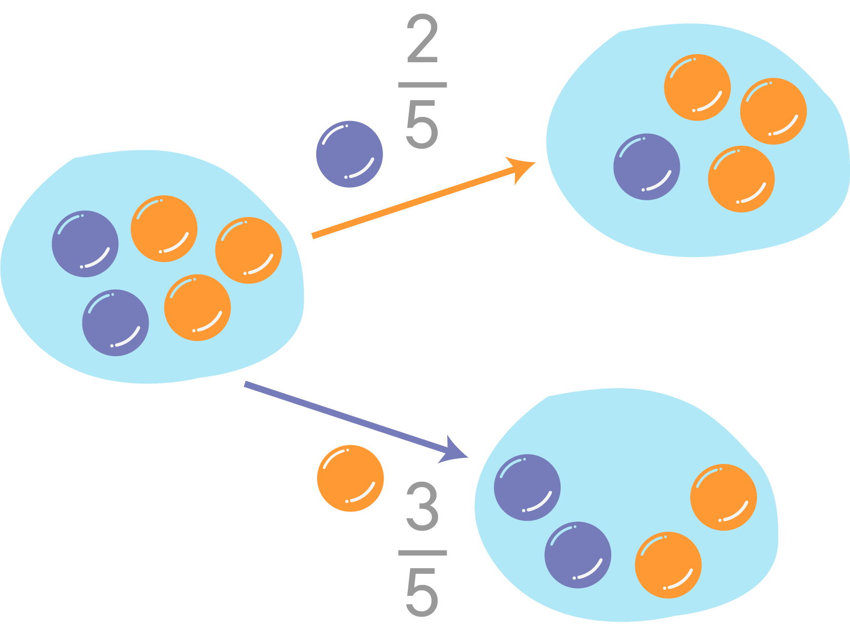- If we drew an orange marble first, the probability of getting a purple marble for event B is