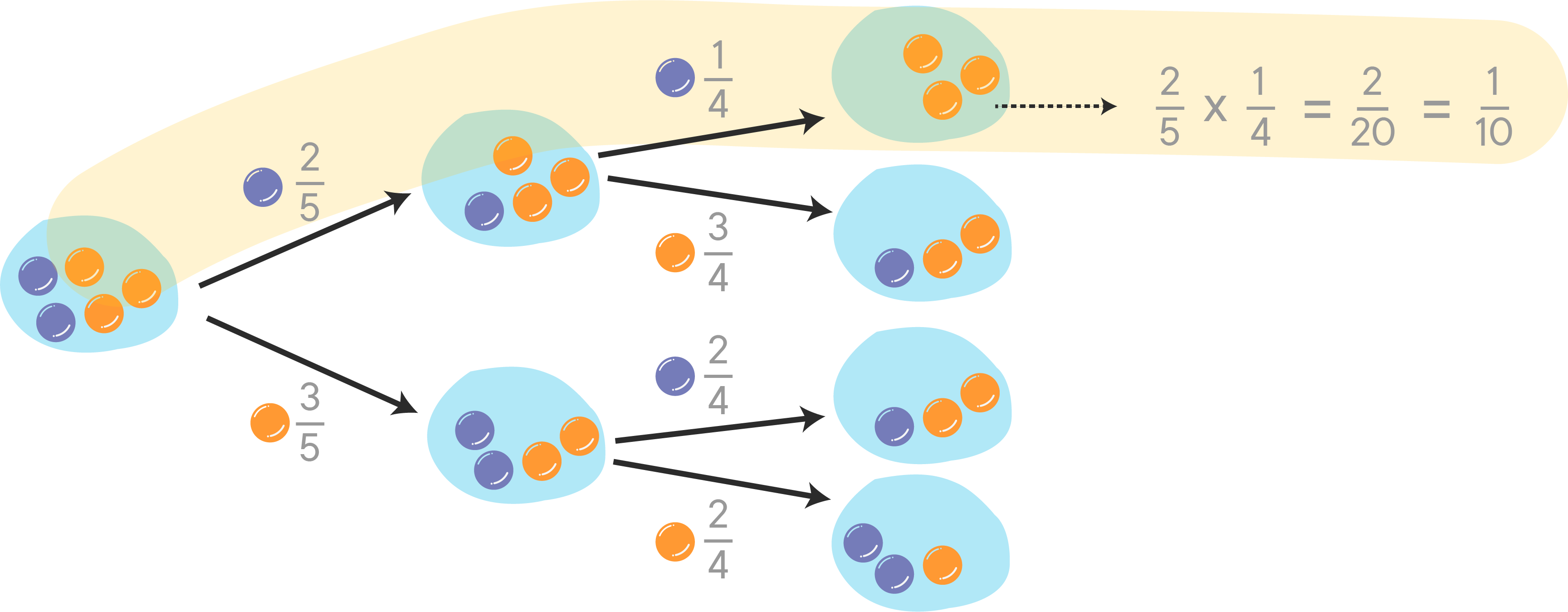 Here you can see that our second event is dependent on the outcome of the first draw.
