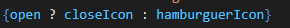 I make use of the ternary operator to know if the menu is open or not. if true, show const closeIcon on screen and if false, show const hamburguerIcon instead.