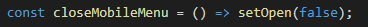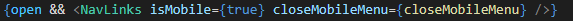 When the hamburger menu is activated, clicking on the navigation menus will not close the menu. To solve this problem I made use of props. I created a function called closeMobileMenu that will pass the value of open to false.
