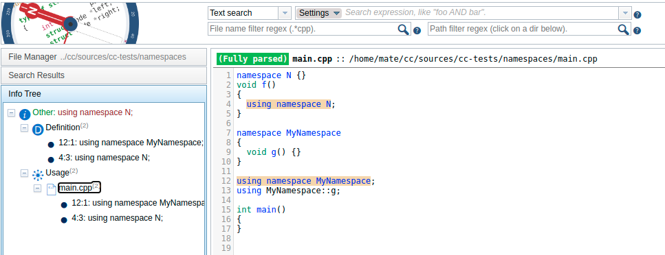 https://github.com/mcserep/cc-tests/blob/master/namespaces/main.cpp