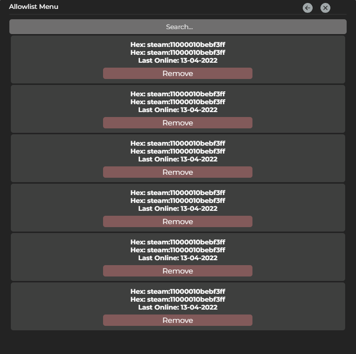 - Allowlist in game panel.
