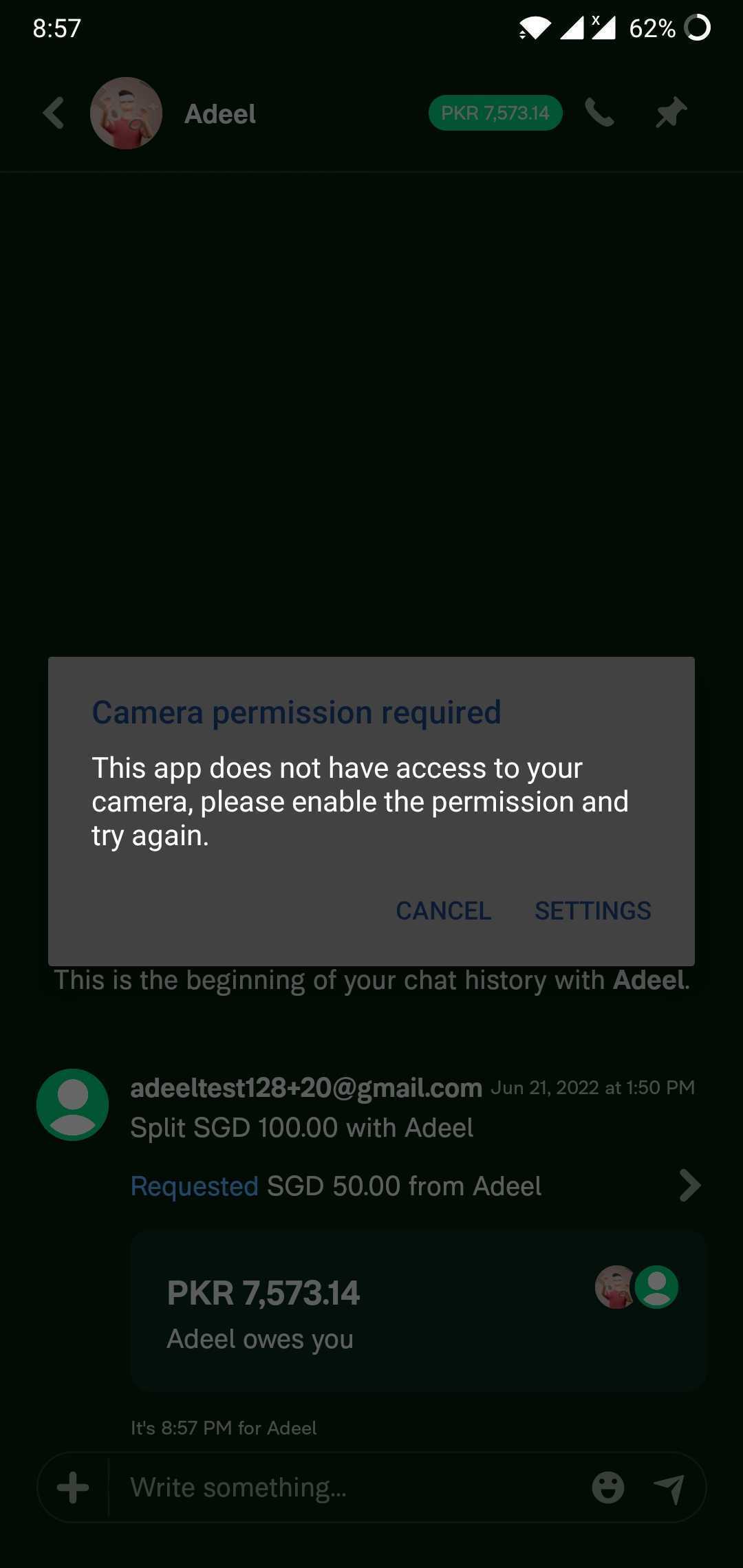 - Go to android app's settings and deny the camera permission