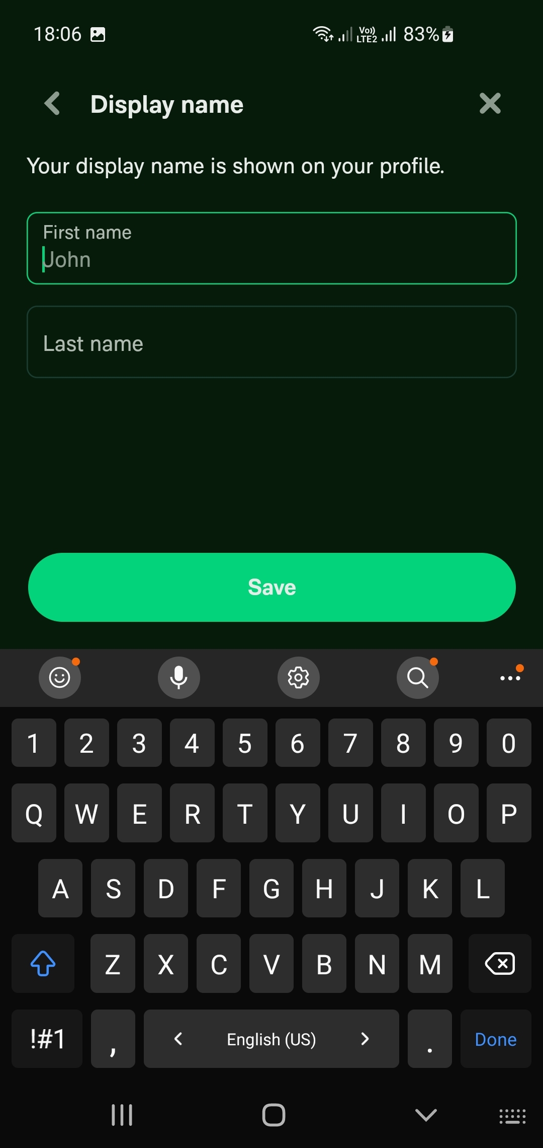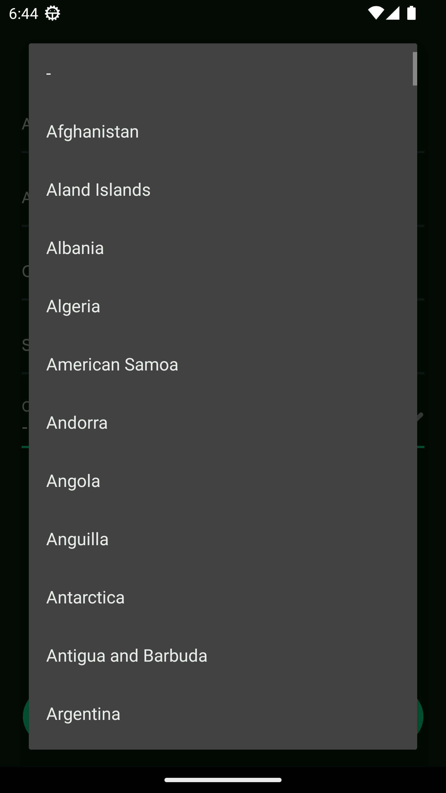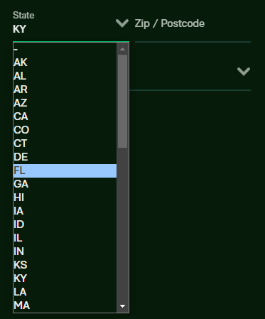 Country picker on Settings / Profile / Personal details / Home address page. After selecting USA, check State picker