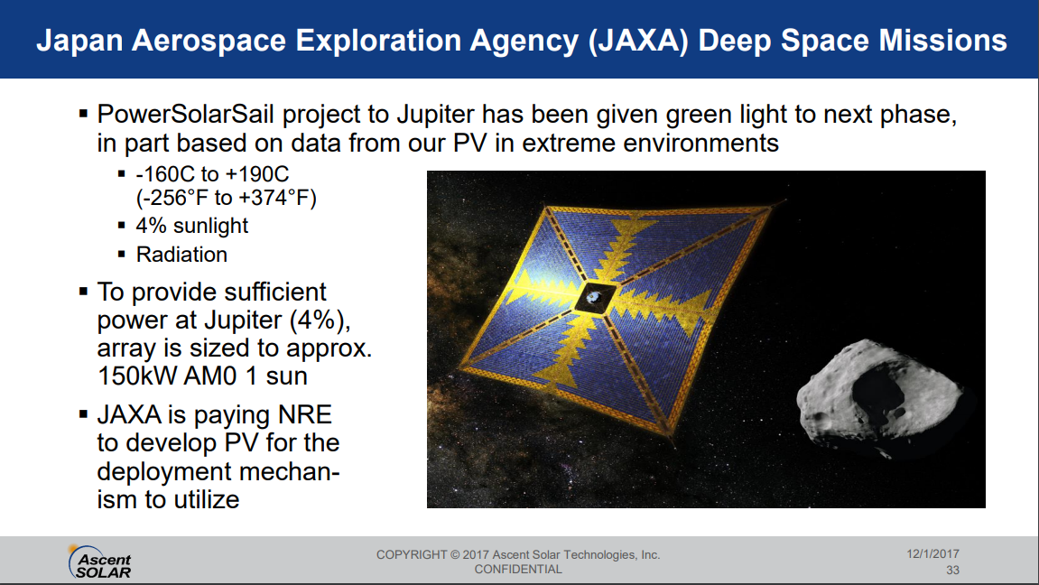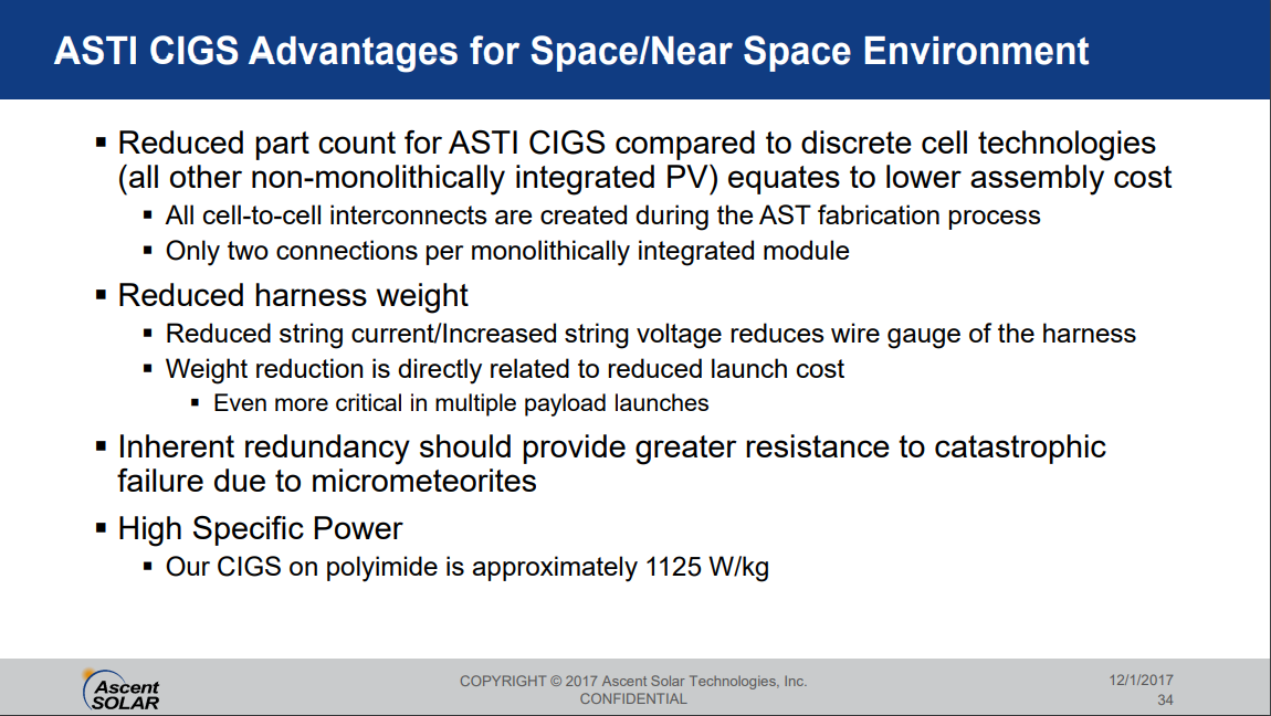 Thin-film CIGS on flexible plastic substrate, Ascent Solar, 2017