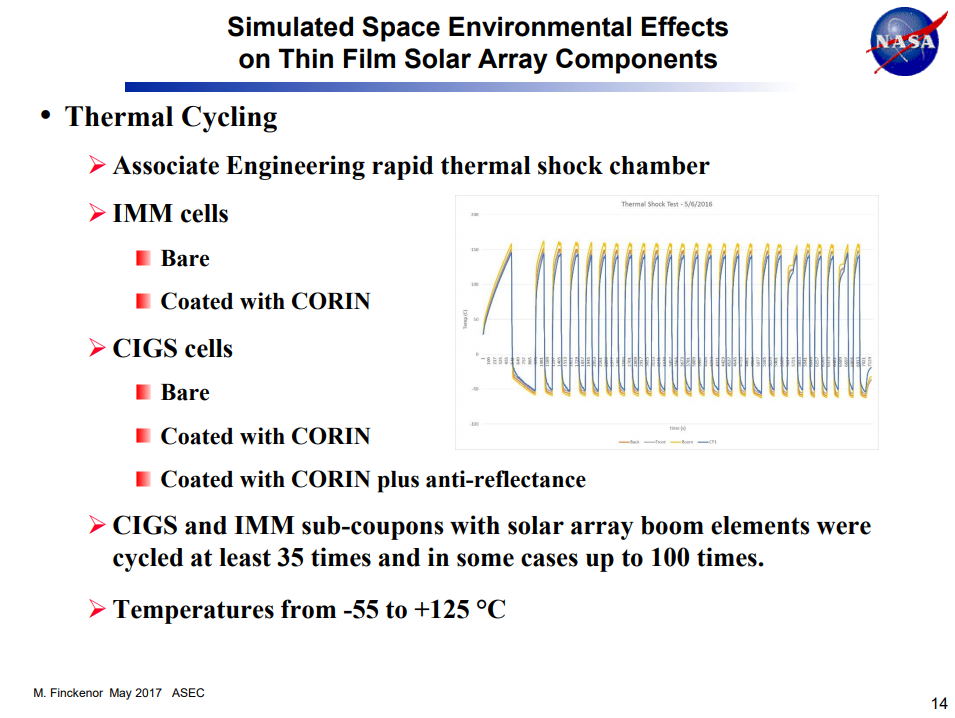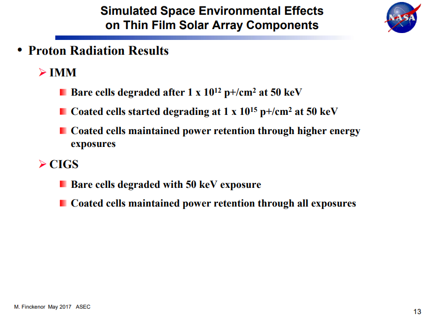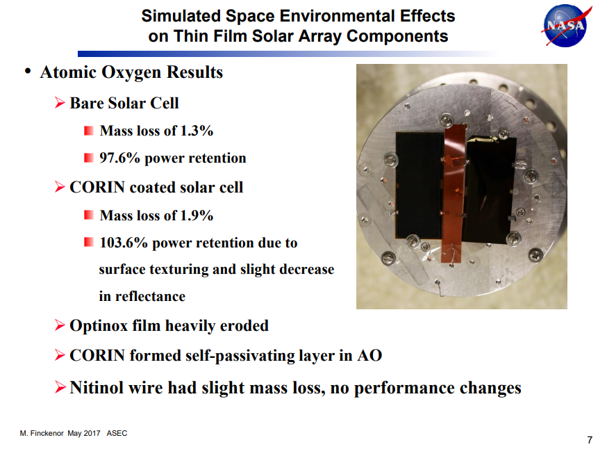 Simulated Space Environmental Effects on Thin Film Solar Array Components, NASA, 2017