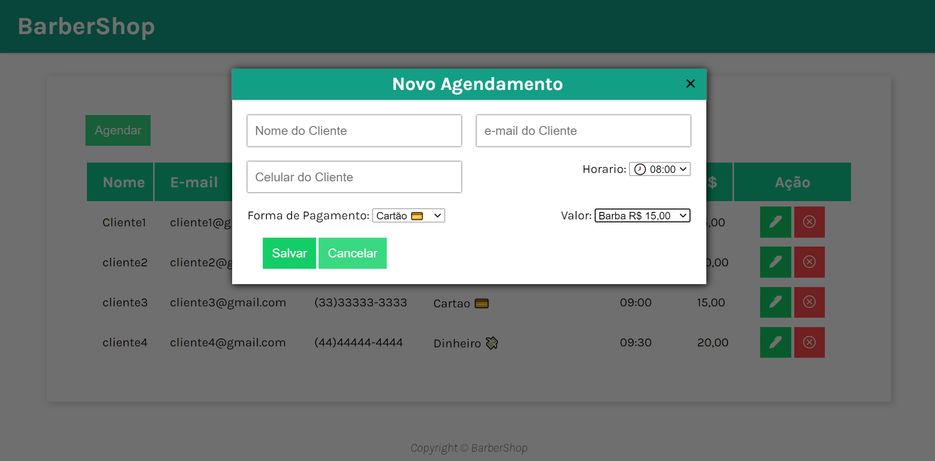 - Um projeto escolar, de uma barbearia fictícia, o intuito é que o projeto faça o agendamento dos clientes.