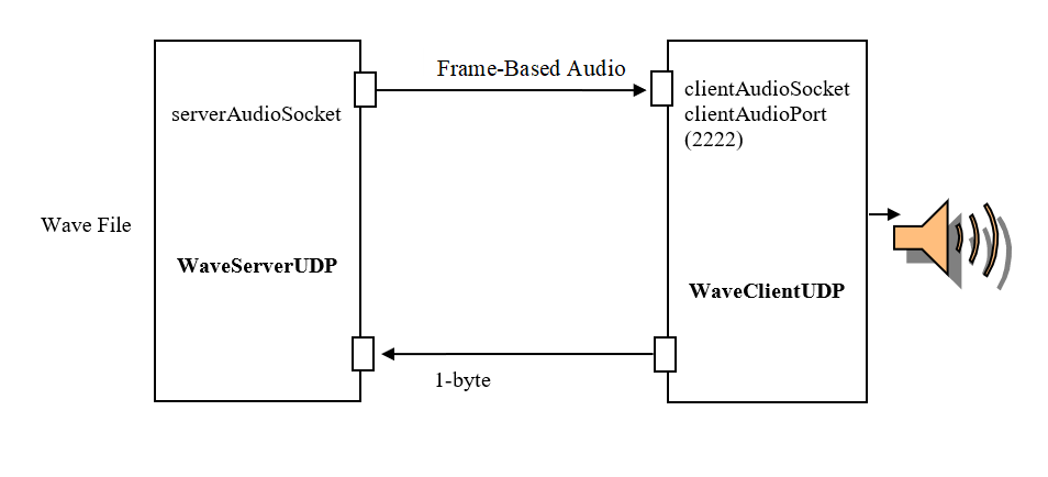 The server sends bytes of audio portionally, when the portion of data is sent it block waits until the receiver sends an acknoledgement