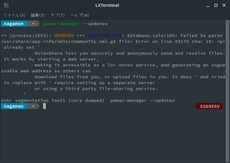 「ソフトウェアの更新」をコマンドで起動した様子(lxde)↓