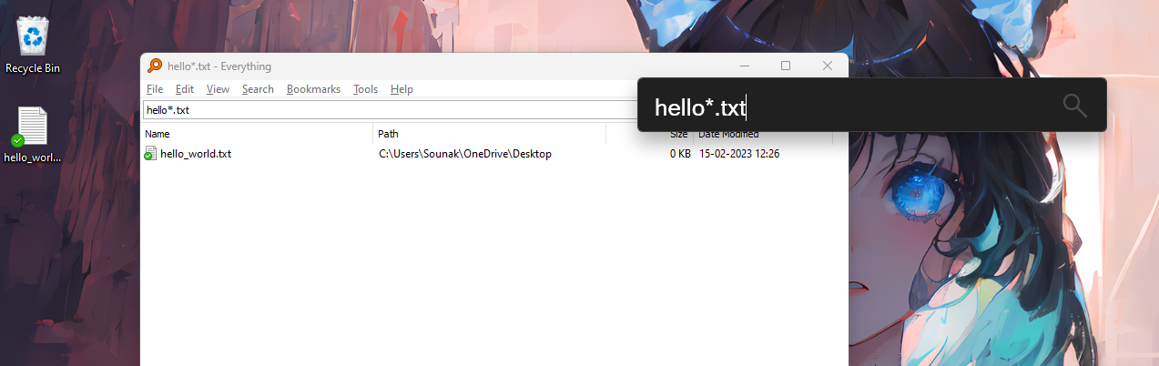 hello*.txtto ensure the file has been indexed by Everything - Type
