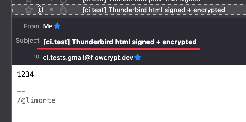 While working on #3941 I sent 3 types of messages to `ci.tests.gmail@flowcrypt.dev`: - signed html (all good) - signed text (all good) - signed + encrypted html (faced issues) Here's how it looks like in Thunderbird:  And here's how it looks in FlowCrypt: