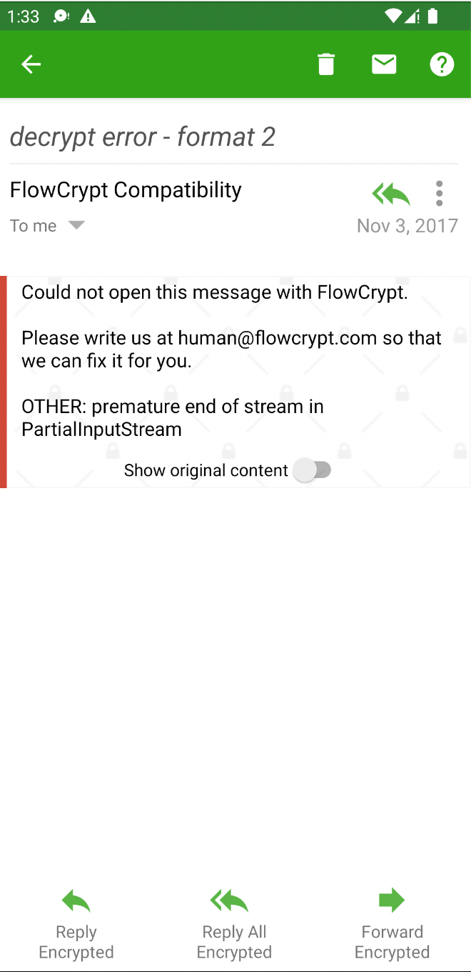 - Current key cannot open the message - often happens when the user is using the wrong private key or the sender uses an old public key to encrypt the message.
