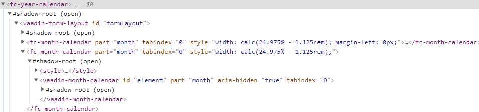 Even after fixing #7, the styles are not visible in our Vaadin 23 demo: the month calendars are stamped, but the custom styles from test_year-month-calendar.css are not injected.