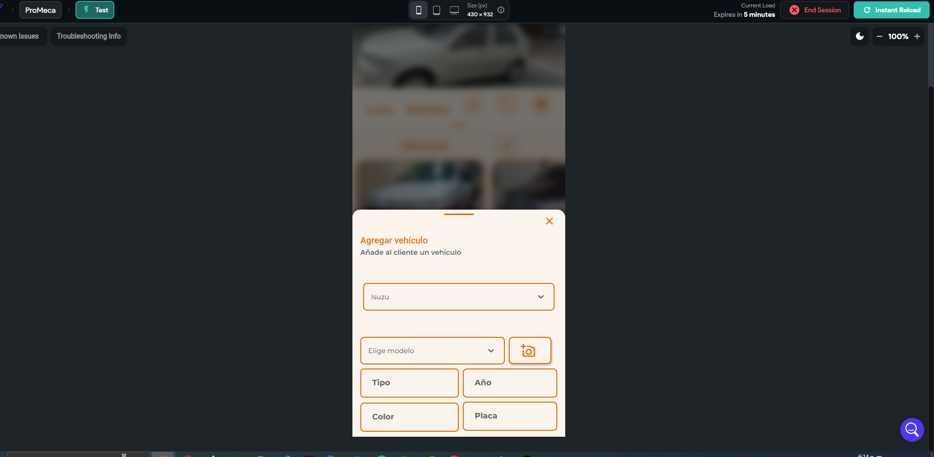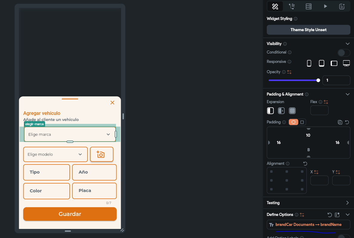 - Click on the "+" add button to show the bottom sheet and choose the options to add a car. In those dropdowns are the issue. If you choose the Brand, you wont be able to choose the model, because the second dropdown will be inactive. I dont know why. As i say, that section was already finished.