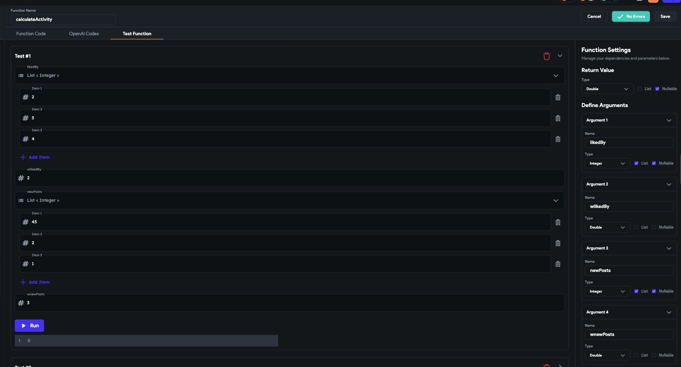 1, I created a custom function and when I tested it always give me 0, but if I use the function in the app it gives the expected result
