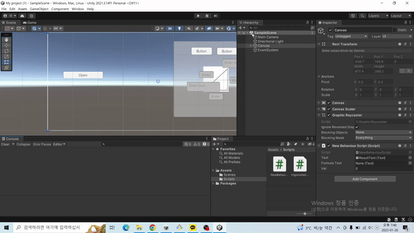 unity-calculator 사칙연산 계산기 개발 기능 기본 사칙연산 괄호, 한 글자 삭제, 전체 초기화 삼각함수 계산기 개발기능 두 변, 두 각 또는 한 변과 한 각이 주어졌을 때 삼각함수를 통해 알수 있는 모든 값 비고 UI 미 개발 Radian으로 표기되는 부분 Degree로 변환 필요