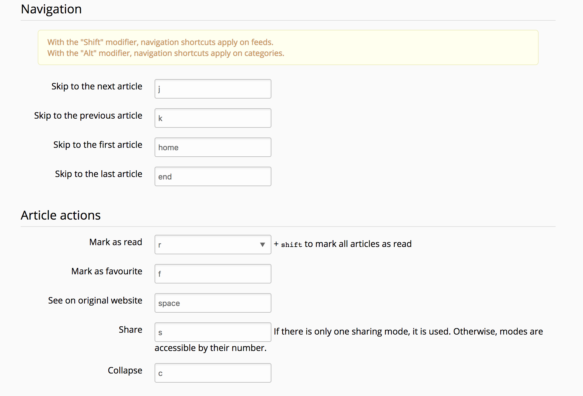 Yes, you can just change it to enter (or anything else). I've grown accustomed to space as a standard in feedreaders (from native readers like QuiteRSS to webreaders) but it's never been something I saw as anything other than an annoying hijacking in some browsers. Trying to type something while accidentally not having selected a textbox and suddenly you're somewhere completely different… It's somewhat similar with submit but that's in everything. Anyway, I don't have a strong opinion on it. Space and enter both seem logical, and either way it's simple to change. |