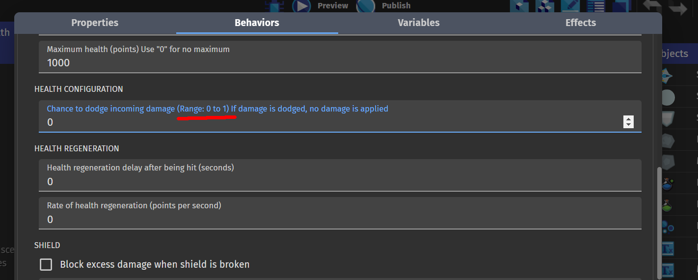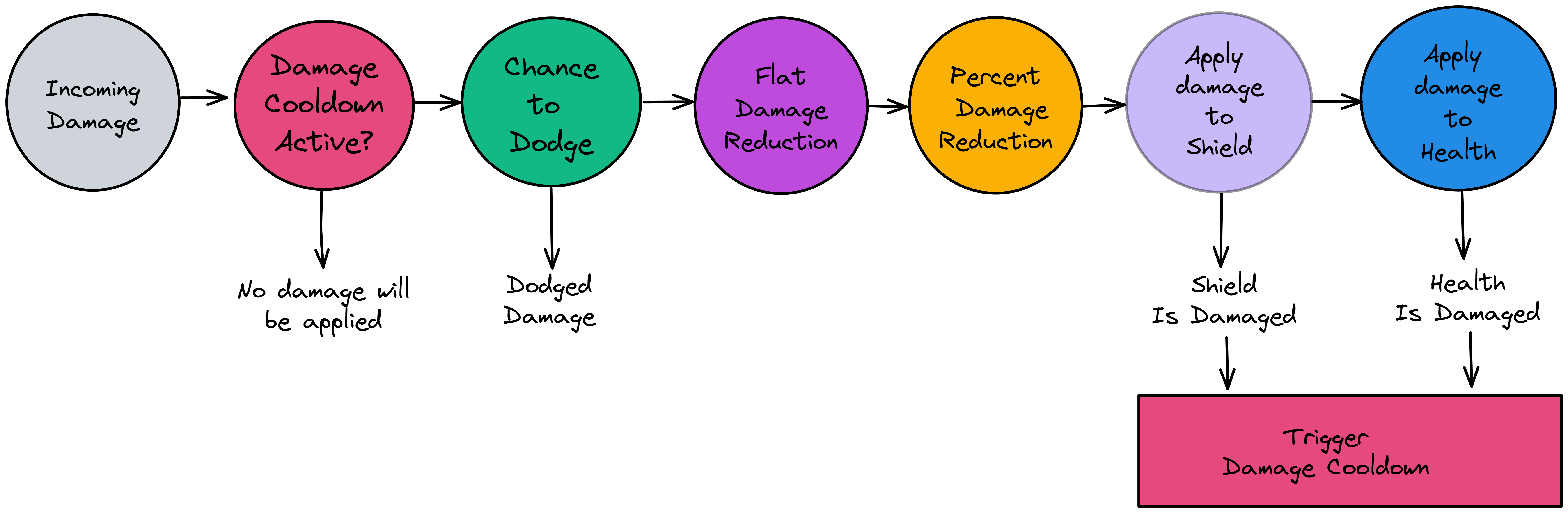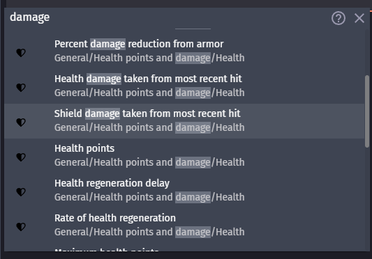Manage health (life) and shield points of an object. Health can be assigned to players, enemies, NPCs, or even inanimate objects such as breaking doors and mining rocks.