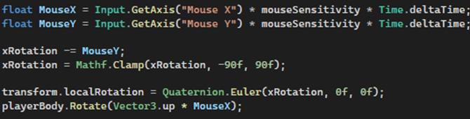 Will control the player using a player controller component and inputs of WASD keys and mouse. We added the ability to jump by adding velocity to our player. Movement and gravity script: