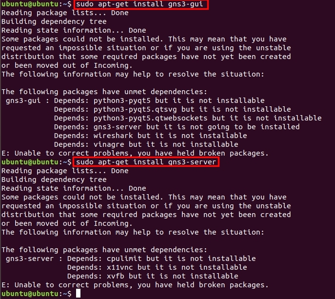 sudo add-apt-repository ppa:gns3/unstable && sudo apt update && sudo apt install gns3-gui and also tried adding this ppa before "sudo add-apt-repository ppa:gns3/ppa" |