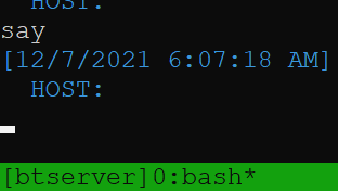 senda command with arguments, i.e.~/btserver send say testExpected behaviour