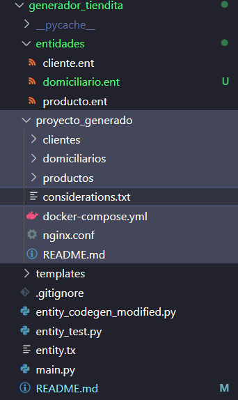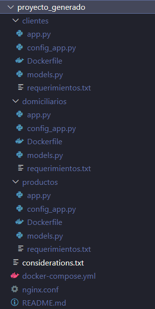 As a result of the script generates a structure into proyecto_generado folder with next files and folders:
