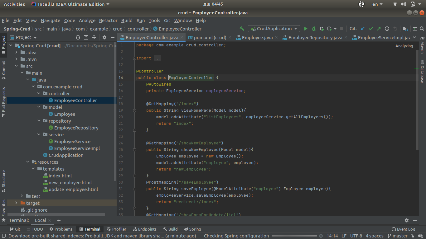 Firstly created crud using spring boot. I used PostgreSQL database local.