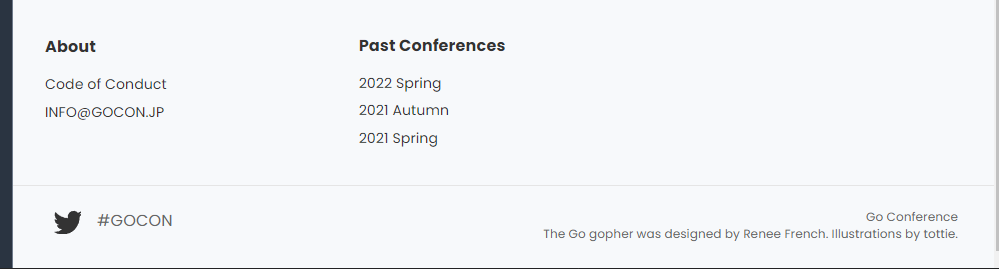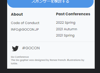 Link: MUI の LInk の見た目に Next.js の Link の機能を組み合わせたコンポーネントを作成したIconTwitter: Twitter アイコンを MUI の SvgIcon を利用して表示するだけのコンポーネントFooter:Code of Conductなど ) を埋め込んだ動作確認