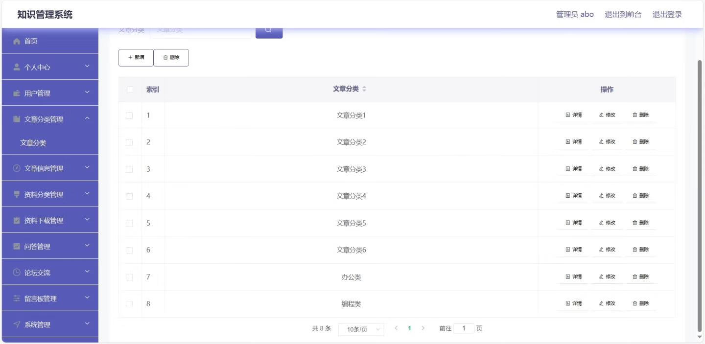 知识管理系统是一个基于B/S架构的Web网站,采用MVC模式设计,实现了前后端分离。该系统主要用于知识的管理和知识库的建设。