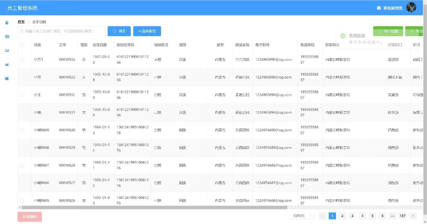 公司员工管理系统是基于 Spring Boot 的前后端分离系统,致力于提升企业人力资源管理效率。系统采用 Vue 进行前端开发,Spring Boot 作为后端框架,搭配 MySQL 数据库。