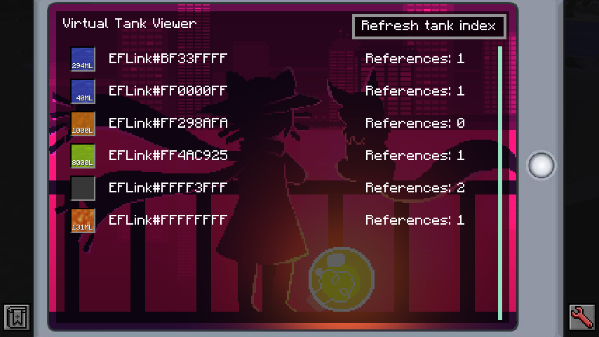 VirtualTankRegistry, a way to manage virtual fluid tanksFluidTankSwitchShim, mainly for gettingTankWidgetto switch which tank it displays without too much hackeryNot implemented (yet?):