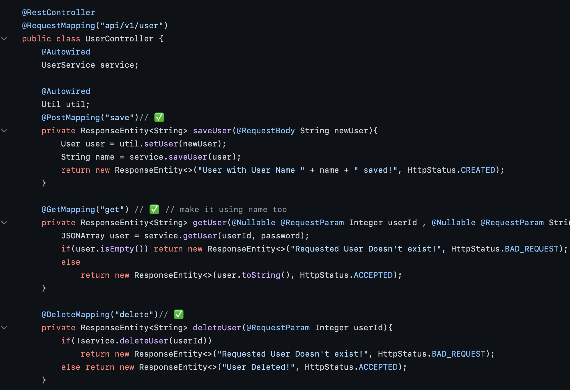 ➡️ : Delete User : localhost:8080/api/v1/user/delete?userId=14