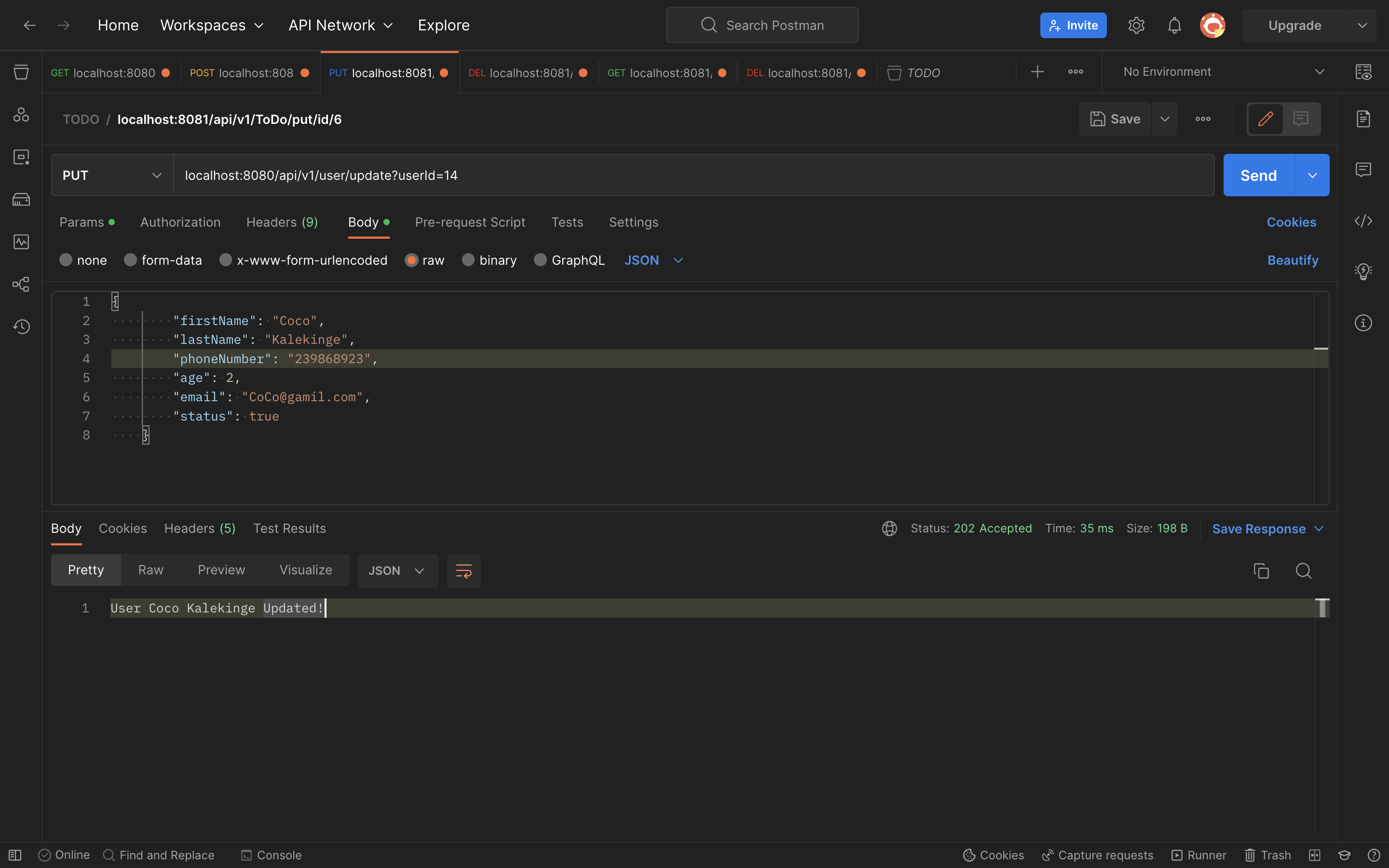 ➡️ : Update User : localhost:8080/api/v1/user/update?userId=14