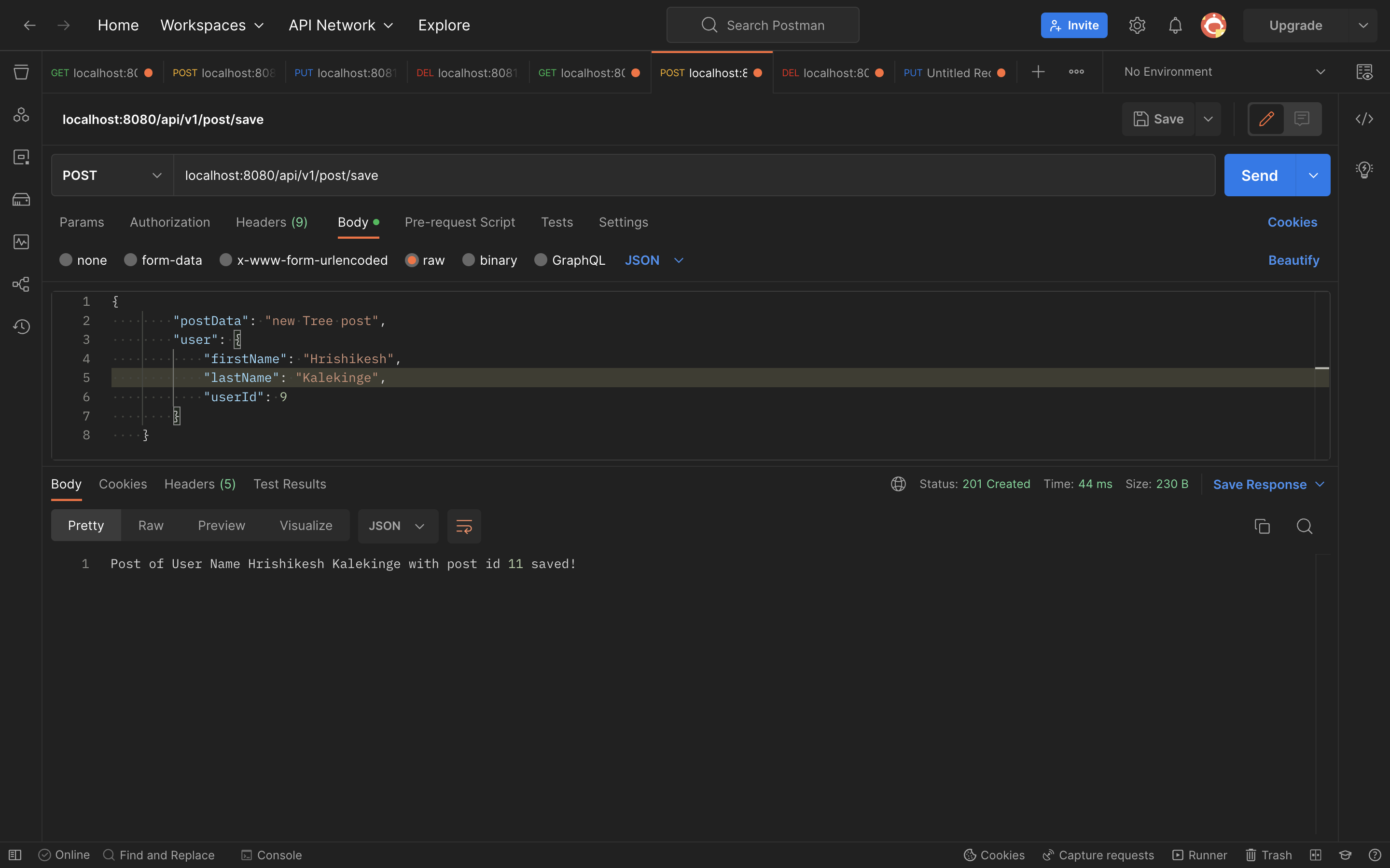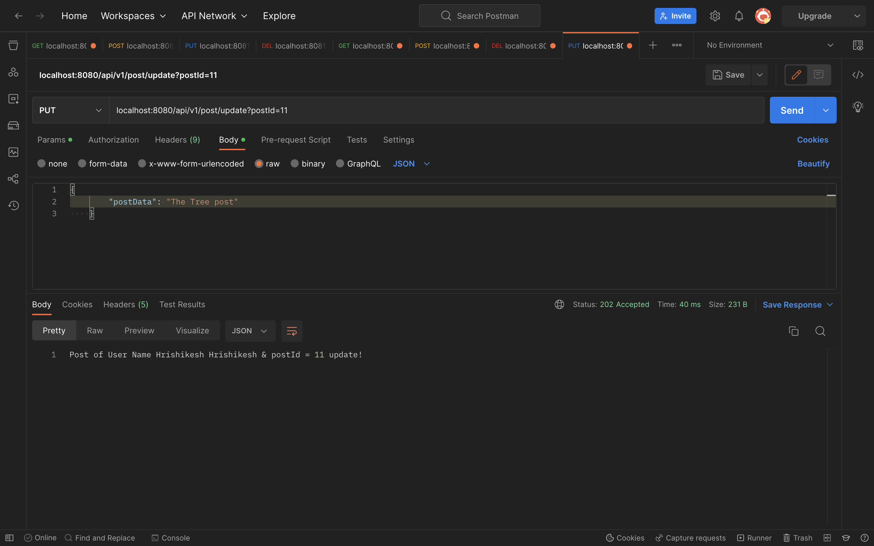 ➡️ : Delete Post : localhost:8080/api/v1/post/delete?postId=10